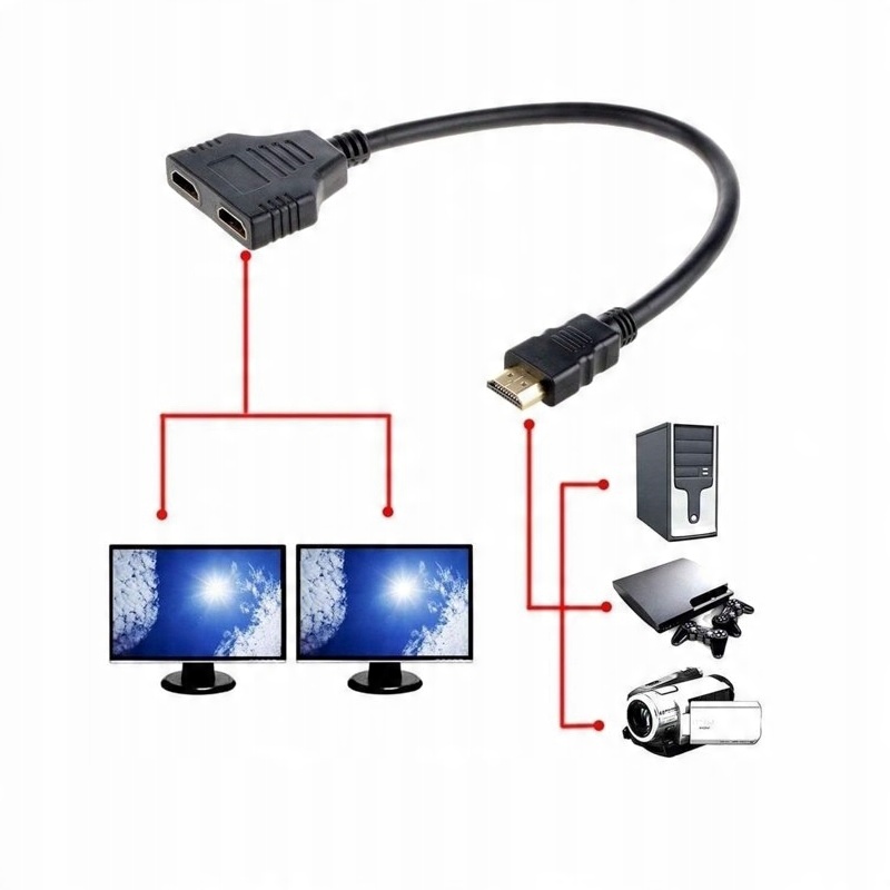 Разветвитель сигнала HDMI, позволяющий разделить сигнал без потери качества. Он позволяет подключить два устройства через кабели HDMI к одному источнику сигнала, например DVD-плеер или ноутбук к двум телевизорам или телевизору и монитору.