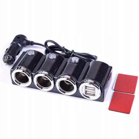 Разветвитель гнезда прикуривателя - 3 розетки + 2 x USB