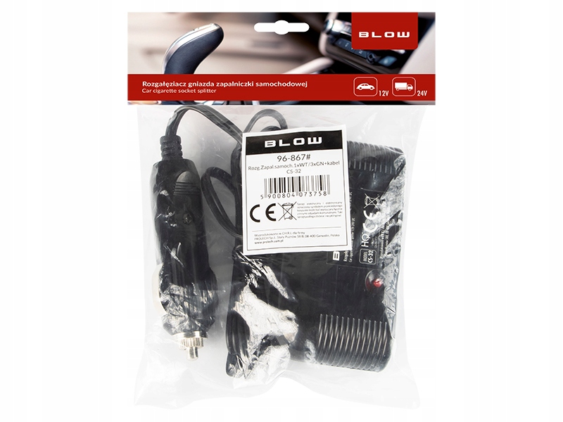 РАСПРЕДЕЛИТЕЛЬ НА 3 РОЗЕТКИ ПРИКУРИВАТЕЛЯ, ДЛИННЫЙ КАБЕЛЬ 12 В и 24 В, 10 А