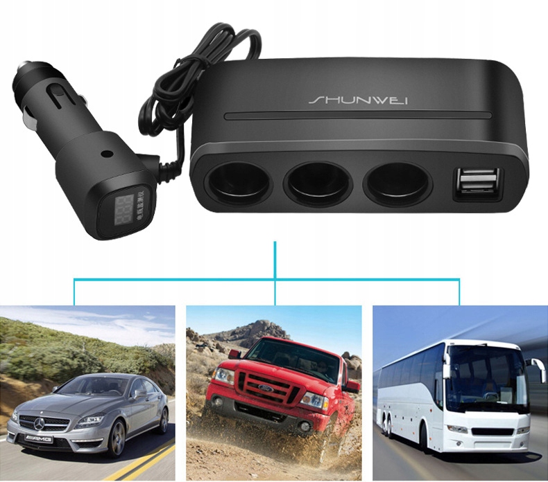 РАЗДЕЛИТЕЛЬ ПРИкуривателя ТРОЙНИК ВОЛЬТМЕТР 2x USB