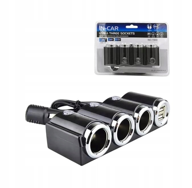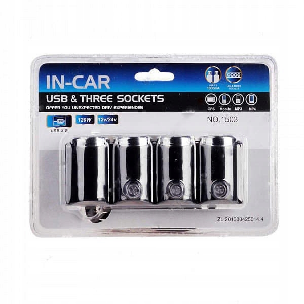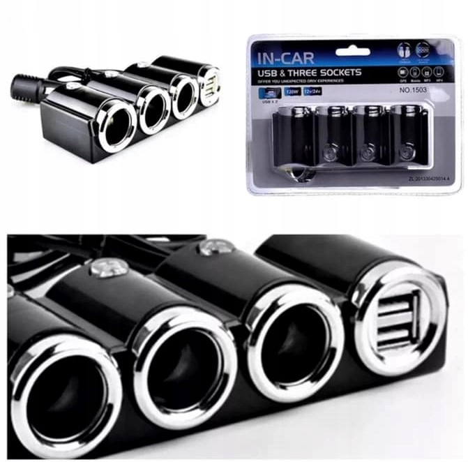 Разветвитель позволяет одновременно подключать четыре устройства через вилку прикуривателя и USB-разъем, например. зарядное устройство, радиоприемник, пылесос, GPS-навигатор, холодильник и т. д.