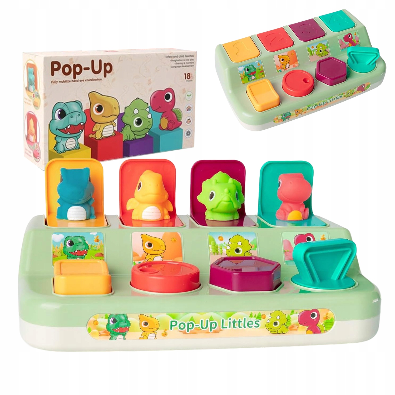 - Эта игрушка, развивающая моторные навыки, отличается яркими цветами и очаровательными персонажами динозавров.