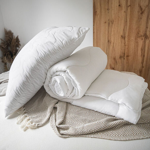 Алоэ вера Слеки. Домашняя стеганая подушка, размером 70 х 80 см является медицинским продуктом. Преимущества этого типа постельных принадлежностей из микрофибры включают в себя простоту адаптации материала к форме тела и высокой воздухопроницаемости. Кроме того, материал не усиливается, благодаря тому, что его можно использовать в течение длительного времени.