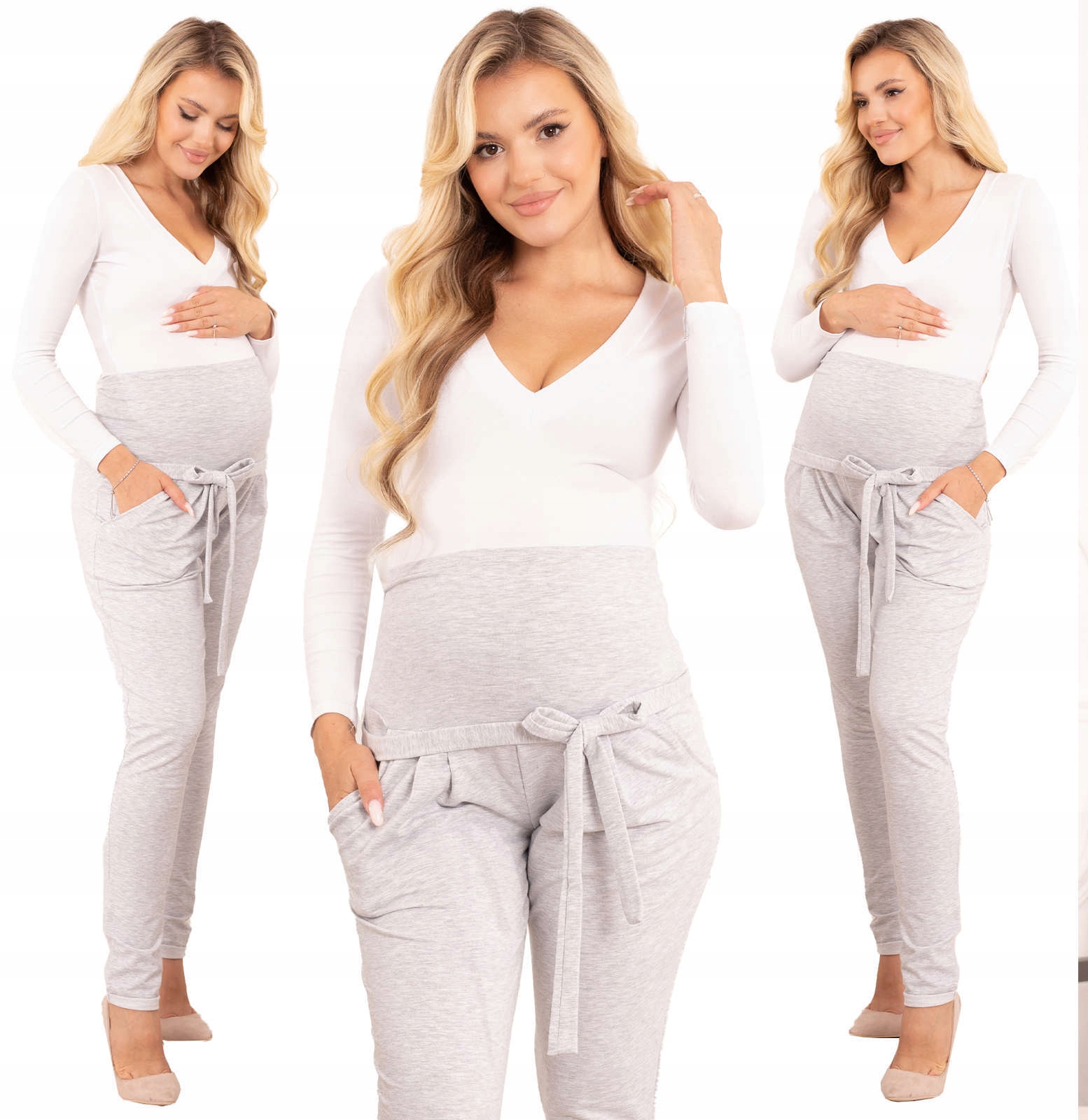 SPODNIE CIĄŻOWE DRESOWE Z PANELEM KOKARDKA