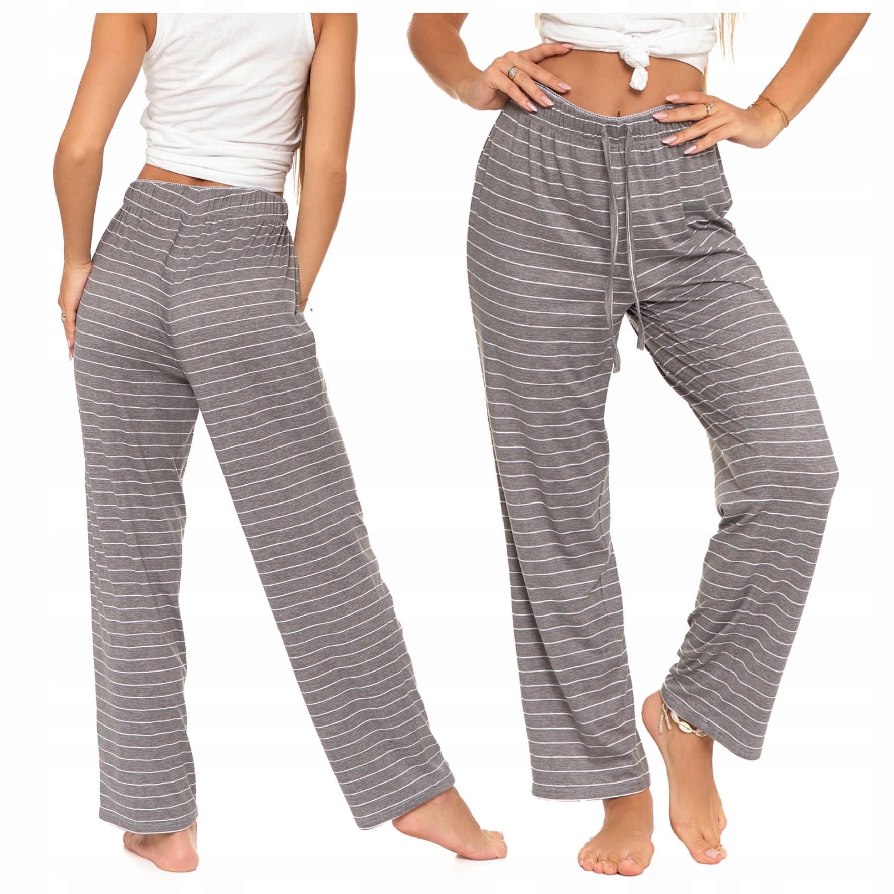 SPODNIE PIŻAMOWE DAMSKIE DO SPANIA WYGODNE W PASKI LUŹNE SZARE MORAJ R. M