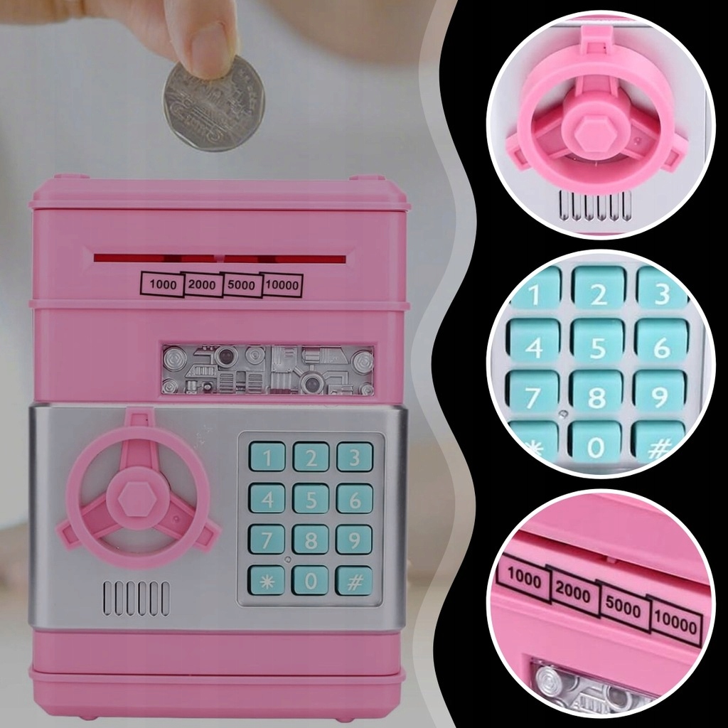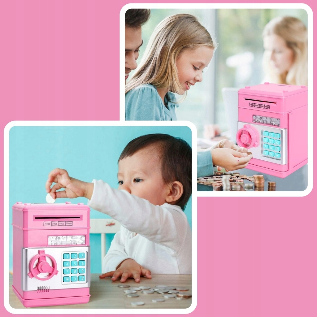 КОПИЛКА-СЕЙФ ДЛЯ ДЕТЕЙ С КОДОМ ДОСТУПА МОНЕТЫ БАНКНОТЫ РОЗОВЫЙ