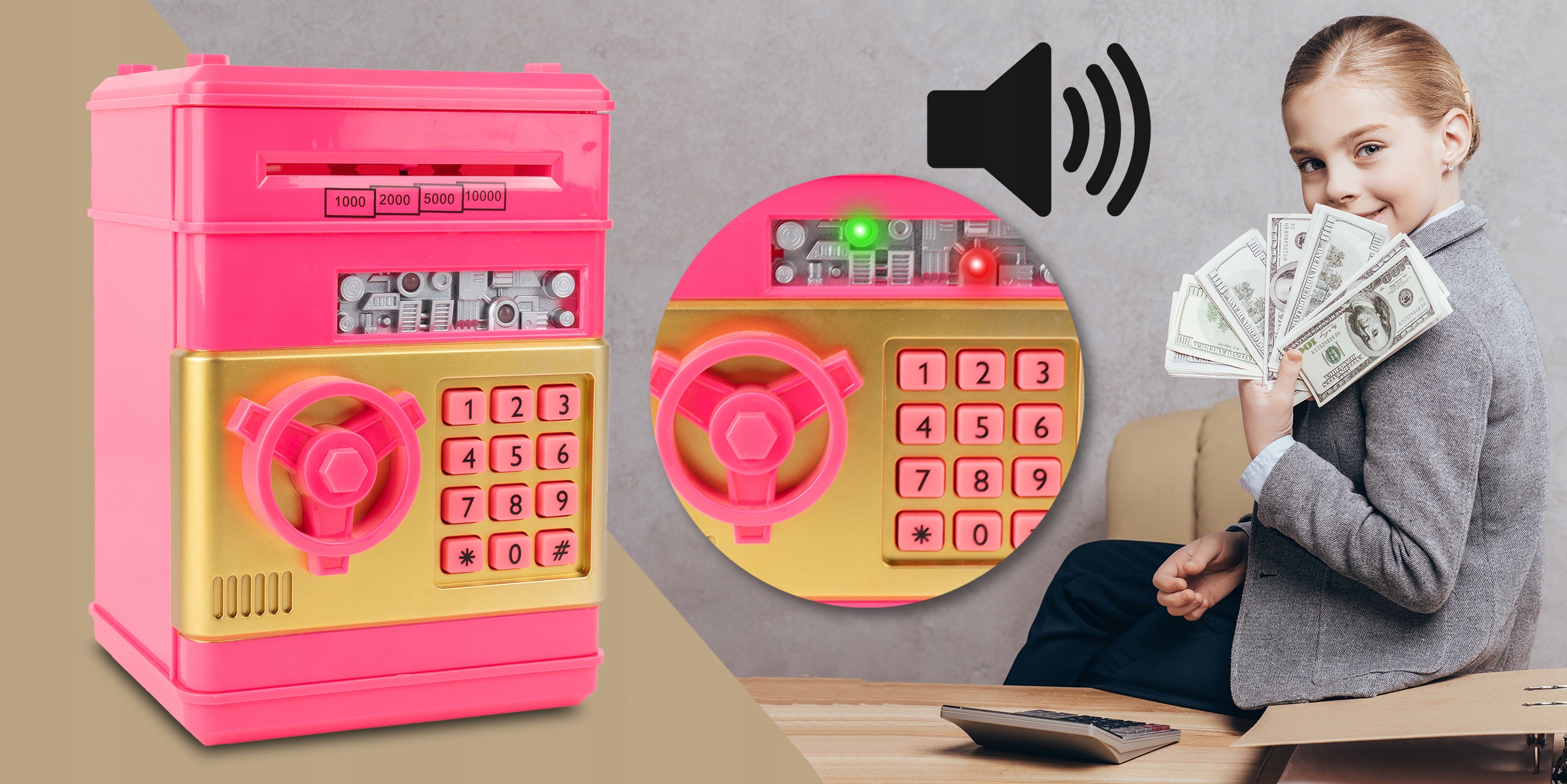 ДЕТСКАЯ КОПИЛКА-СЕЙФ ДЛЯ БАНКНОТ И МОНЕТ, ОТКРЫВАЮЩАЯСЯ ПИН-кодом, ЭЛЕКТРОННАЯ