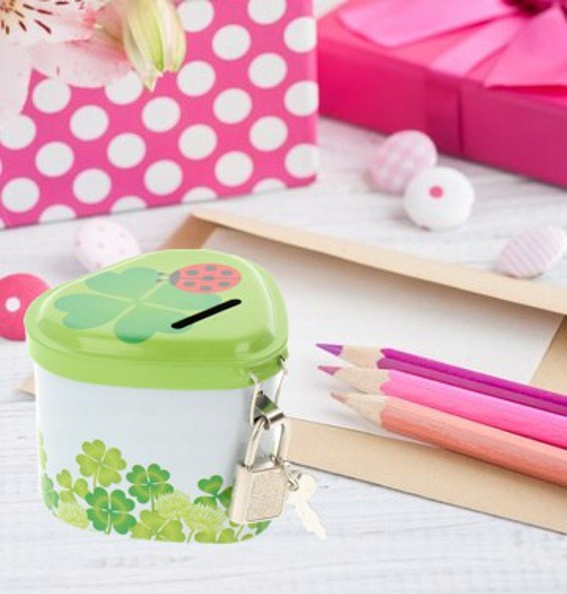 Отличная копилка в форме сердца с очаровательным принтом, в которой вы можете копить деньги на отпуск или на исполнение своей мечты. правда.