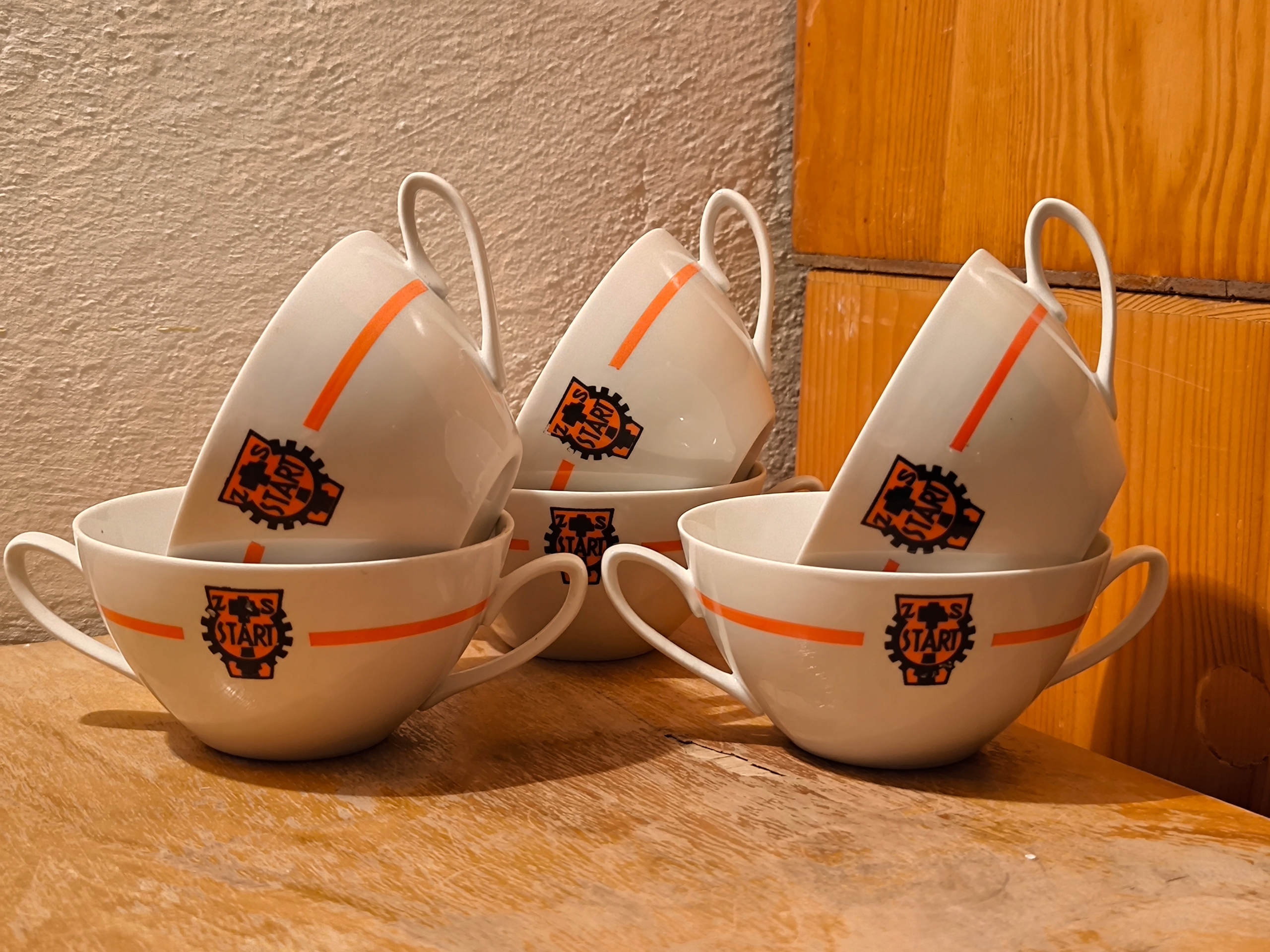 - Высота - ок. 6 -сантиметровые бульоны видимы на прикрепленных фотографиях. У них нет чипсов, трещин или обивки. В течение их лет сохранился в очень хорошем состоянии. Слегка чистоте логотипы в местах. У них могут быть классические следы использования, которые не влияют на их визуальную оценку.