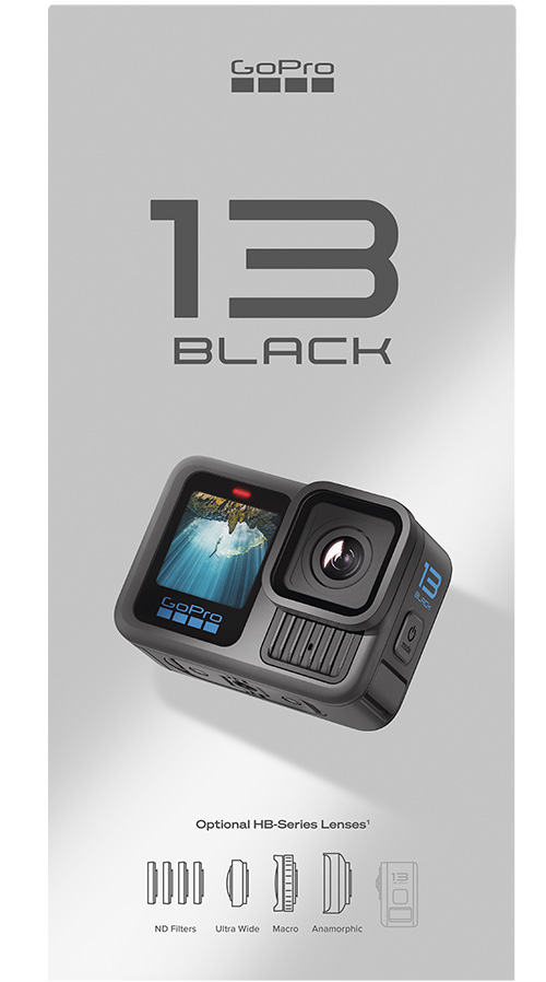 HERO13 Black — камера для каждого творца. Помимо лучшего в своем классе видео 5.3K60 и легендарной долговечности GoPro, камера совместима с новыми объективами серии HB1. Эти объективы расширяют возможности записи, обеспечивая наиболее захватывающие кадры от первого лица, возможность фокусироваться на еще более близких расстояниях, легко создавать размытие изображения с помощью фильтров естественной плотности и захватывать кинематографические анаморфотные изображения. Новый аккумулятор Enduro увеличенной емкости продлевает время записи в любых погодных условиях, а улучшенная система крепления дает HERO13 Black большую гибкость, чем предыдущие камеры GoPro. Благодаря основным функциям GoPro, включая удостоенную наград стабилизацию видео HyperSmooth 6.0, автоматические выделения кадров и возможность автоматической загрузки изображений в облако2, HERO13 Black представляет собой невероятное сочетание передовых технологий и безграничных творческих возможностей.