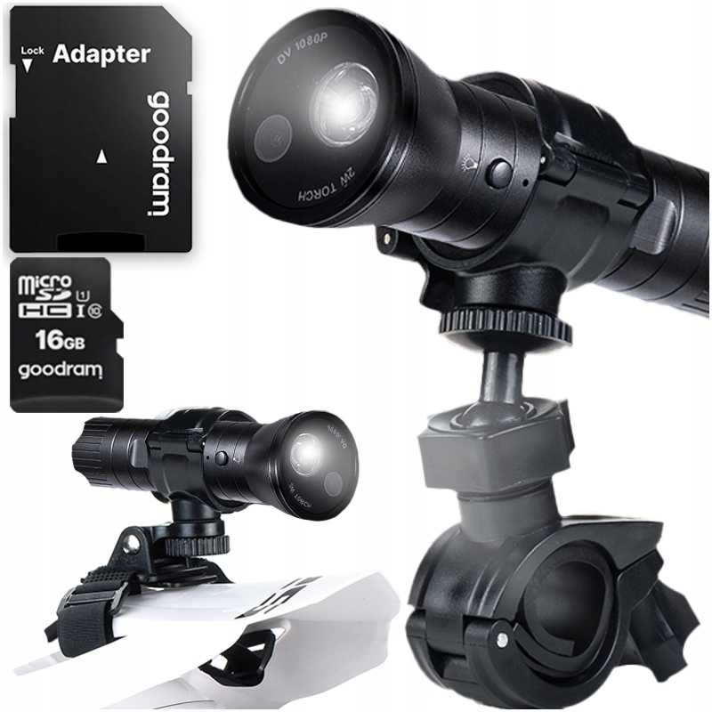 КОМПЛЕКТ КРЕПЛЕНИЙ ДЛЯ СПОРТИВНОЙ КАМЕРЫ 360° ДЛЯ ВЕЛОСИПЕДА, МОТОЦИКЛА + КАРТА 16 ГБ