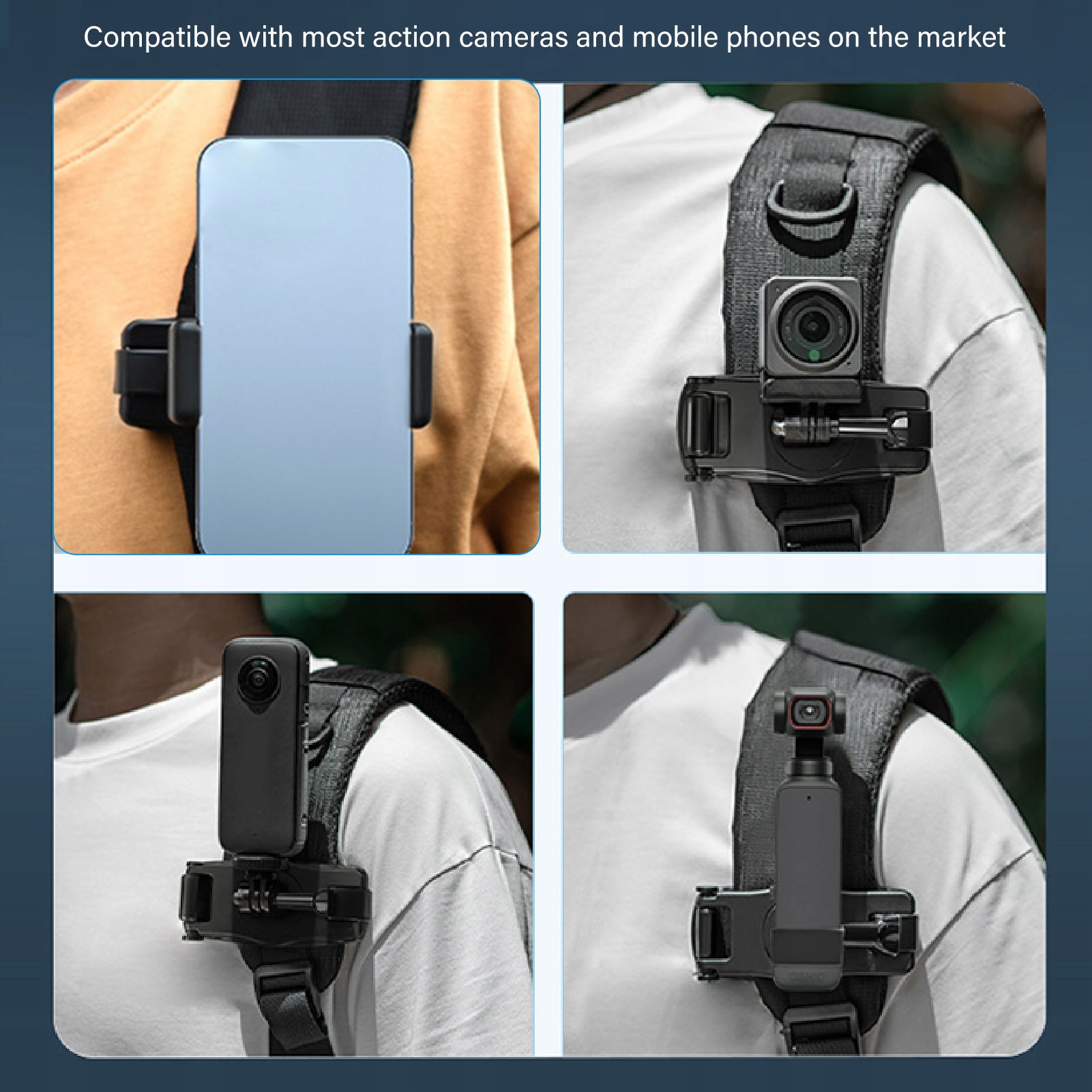 5. Совместимость ширины: быстрый рюкзак рюкзак совместим с большинством камер, разработанных с винтом 1/4 дюйма или стандартным креплением двойной челюсти к камерам действия, адаптированным к Action5pro, адаптированным к 360x5 x4.