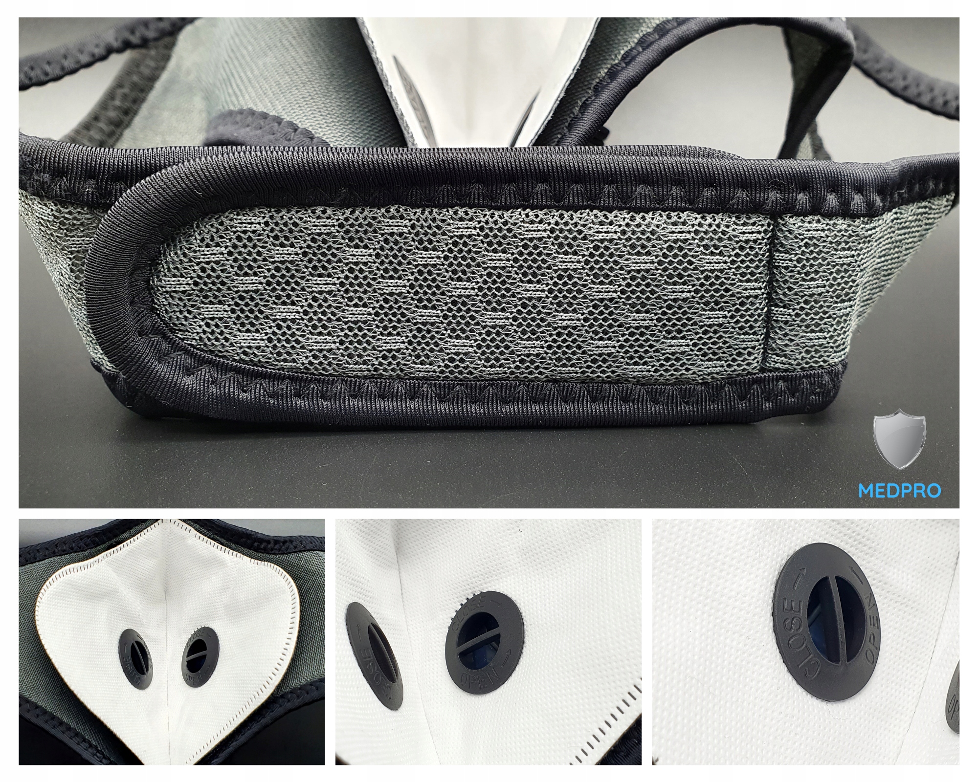 - фильтрующая маска со специальными 2-мя клапанами выдоха и сменным фильтром.