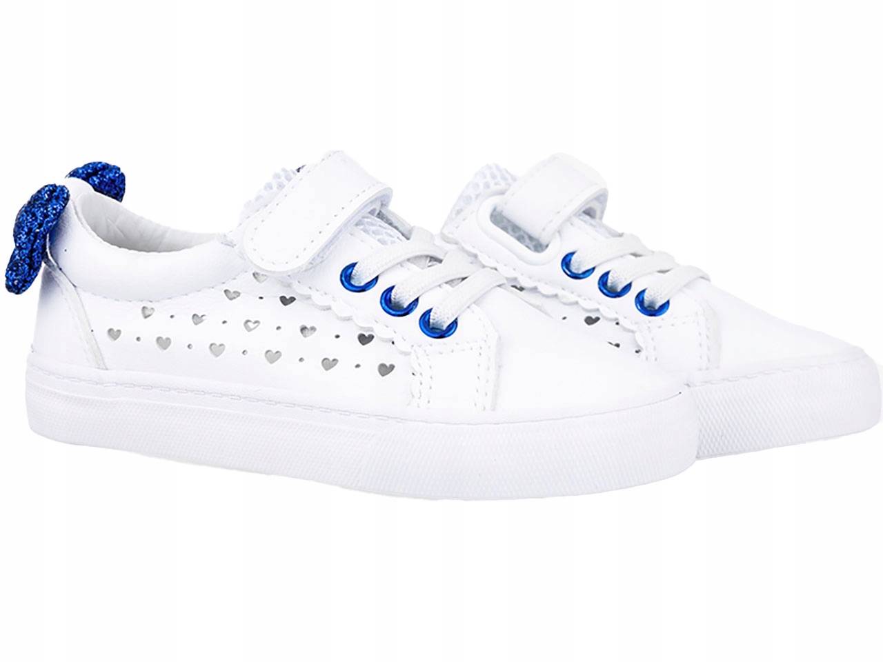Белые кроссовки с бантом, ажурные спортивные туфли на липучке Casu 6-3-22-WBL
