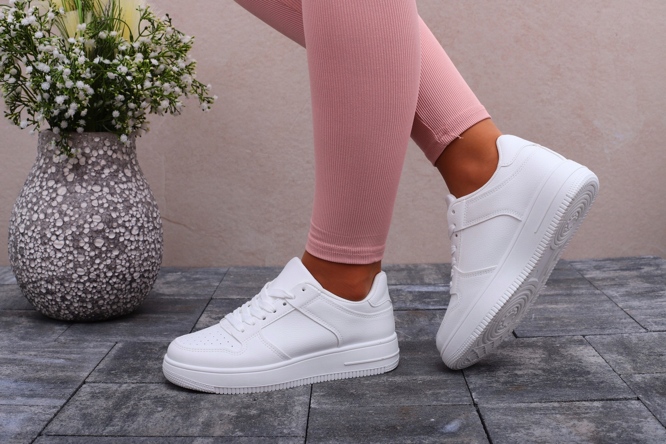 Женские спортивные туфли на шнуровке белого цвета. Изготовлен из материалов хорошего качества. Они подойдут как повседневная, так и спортивная обувь. Обувь легкая и обеспечивает удобство и комфорт использования. Подошва устойчивая и хорошо амортизирует ногу. Классический крой идеально подойдет ко многим стилям!