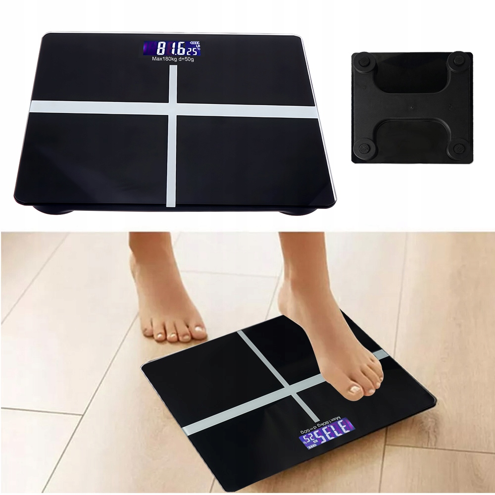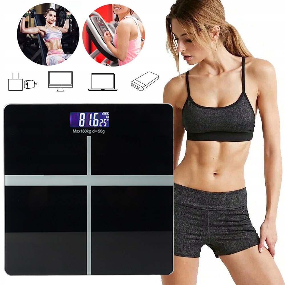 СПОРТИВНЫЕ АНАЛИТИЧЕСКИЕ ВЕСЫ SMART ДЛЯ ВАННОЙ, ЧЕРНЫЕ iOS Android 180 КГ