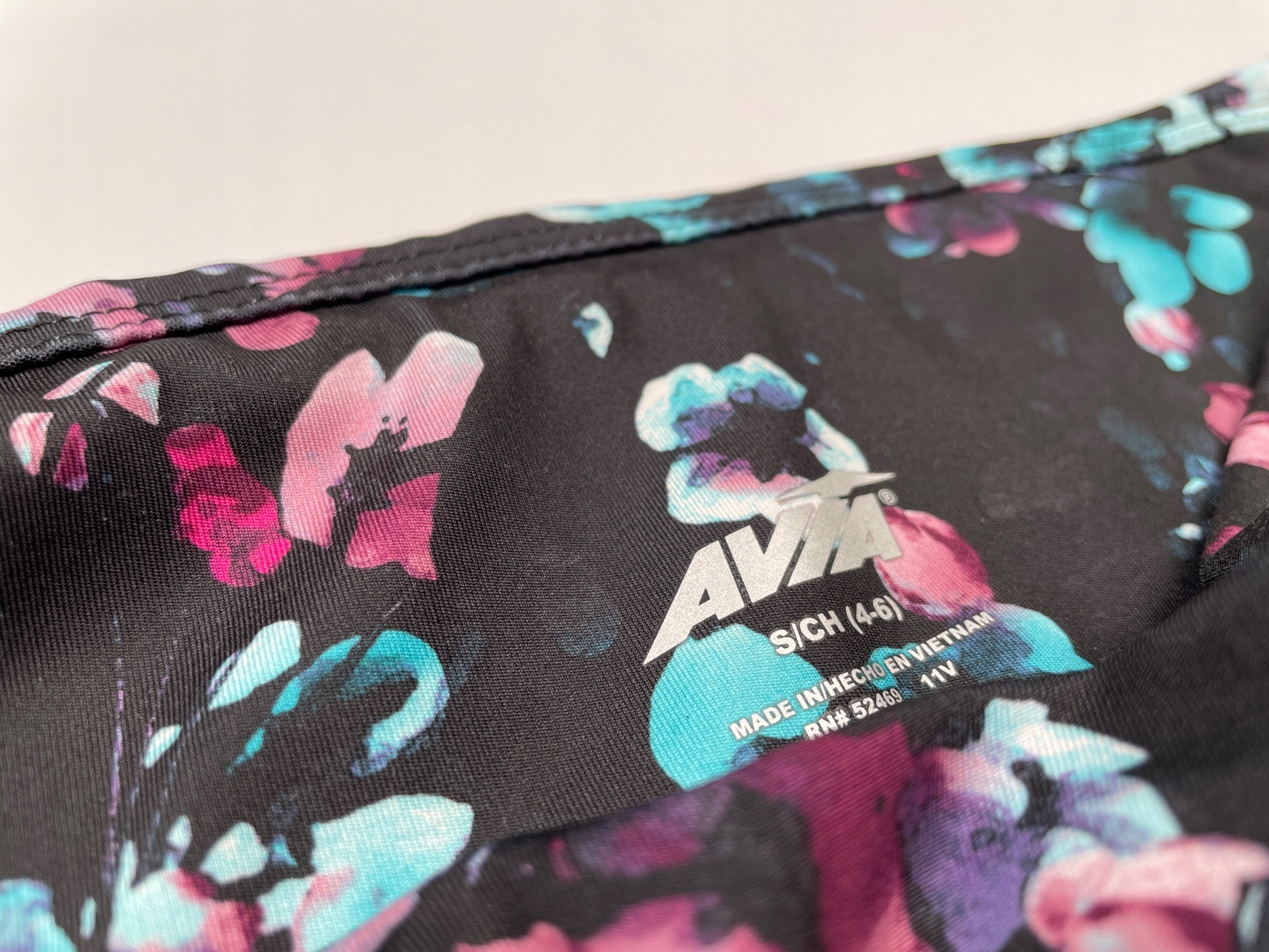 - Avia Женские леггинсы. Они в черном, украшены красивым цветочным рисунком. У них высокое состояние, длинные ноги. У них есть шить из плоских швов, которые обеспечат комфорт в ношении и прекрасно подчеркнут фигуру. Леггинсы, изготовленные из гибкого, скользкого материала. У них есть два кармана по бокам.