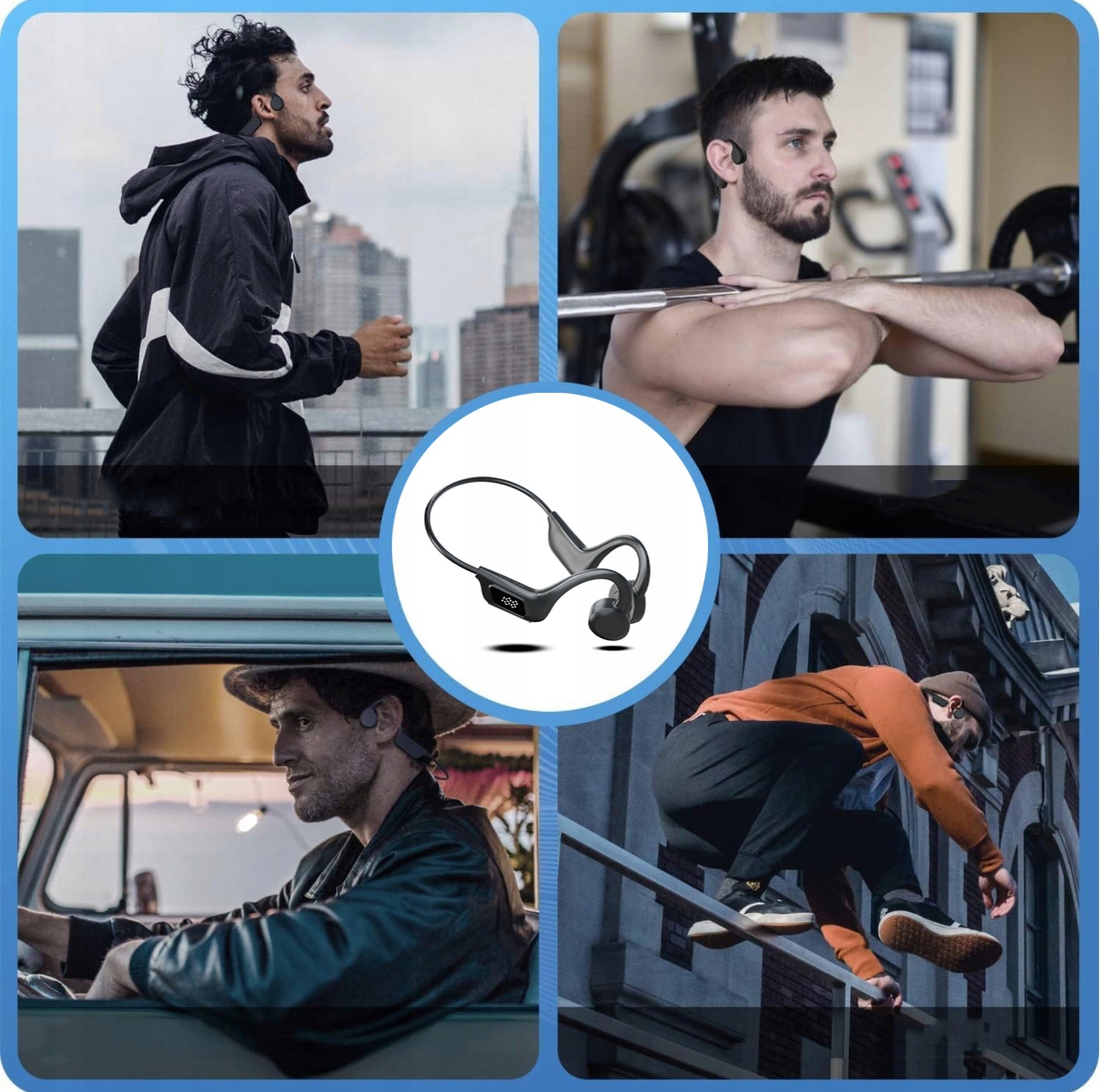 Наушники Bluetooth с костной проводимостью Используйте упругую повязку на шею, которая подходит для большинства людей и удобно носить, и вам не нужно беспокоиться о наушниках. Наушники с костным звуком являются водонепроницаемым IPX4, поэтому вы можете наслаждаться музыкой во время упражнений.