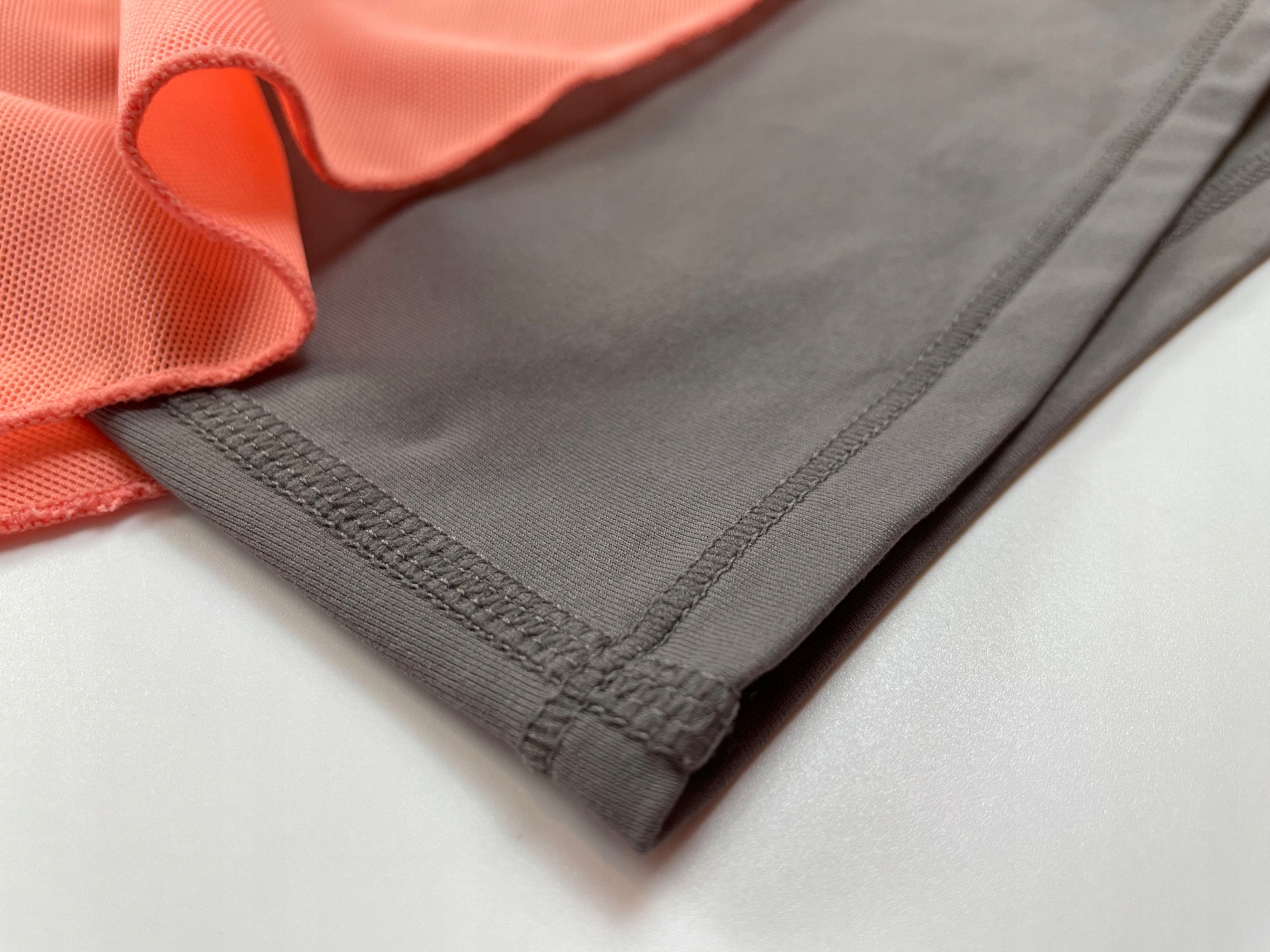 - Спортивные шорты Lolë. Шорты серого цвета, приталенного кроя. Материал, из которого они изготовлены, гибок, прилегает к телу и не ограничивает движения. Внешняя часть – оранжевая юбка. Имеет широкую, слегка растягивающуюся резинку. По низу очаровательная оборка из сетчатого материала. Внутри есть небольшой потайной карман.