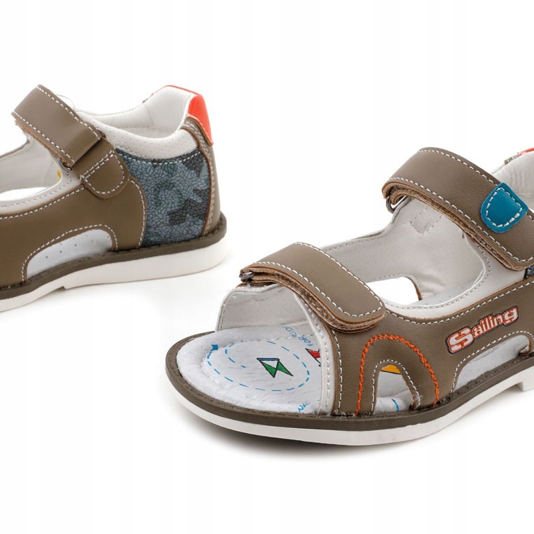Сандалии для мальчиков на плоской подошве. Низкий верх из экокожи. Застегивается спереди на две регулируемые ленты-липучки. Открытый нос, вырезаемый по бокам. Декорировано строчкой и вставками различных цветов. Идеальный выбор для вашего ребенка.