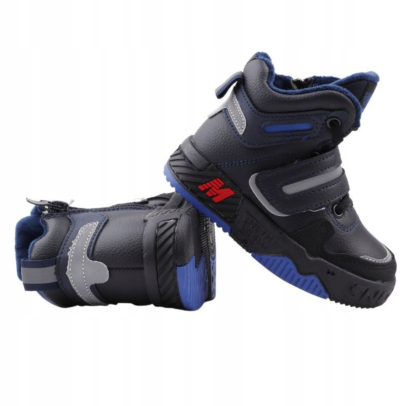 СПОРТИВНЫЕ БОТИНКИ ДЛЯ МАЛЬЧИКОВ, УТЕПЛЕННЫЕ, ДЕТСКИЕ СНЕЖНЫЕ БОТИНКИ, МОЛНИЯ, ЛИПУЧКА, ТЕМНО-СИНИЙ