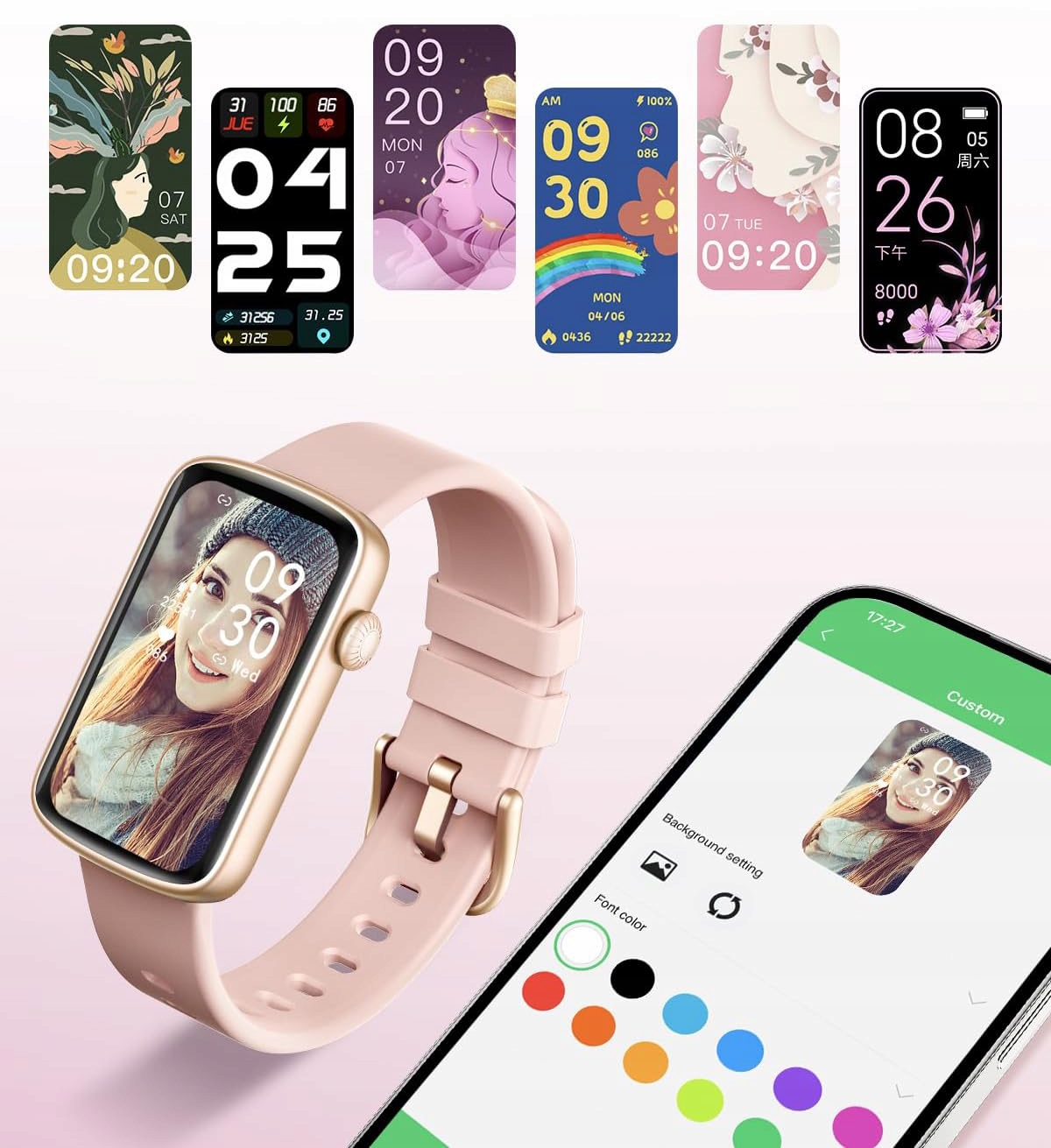 Внешний вид нашего смарт-браслета можно настроить в соответствии с нашими предпочтениями. На часах доступно несколько красивых изысканных циферблатов.