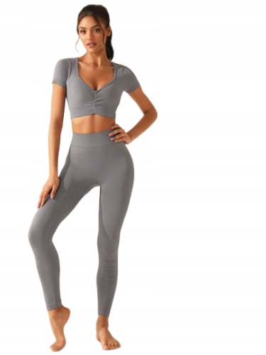СПОРТИВНИЙ КОМПЛЕКТ, ПІДБОРНИЙ, ГЛАДКИЙ, СІРИЙ, XS ŁLA