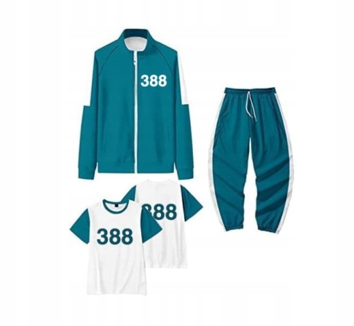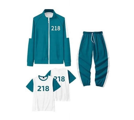 Спортивный костюм для игры в кальмары, комплект из 3 предметов, толстовка и штаны.