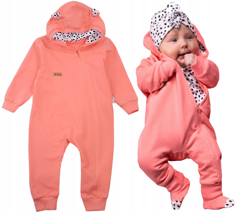 Раскрой: Комбинезон с капюшоном на дополнительной подкладке из хлопка. Застегивается по диагонали на молнию. Брюки и рукава отделаны манжетами. Декоративная кожаная нашивка спереди.