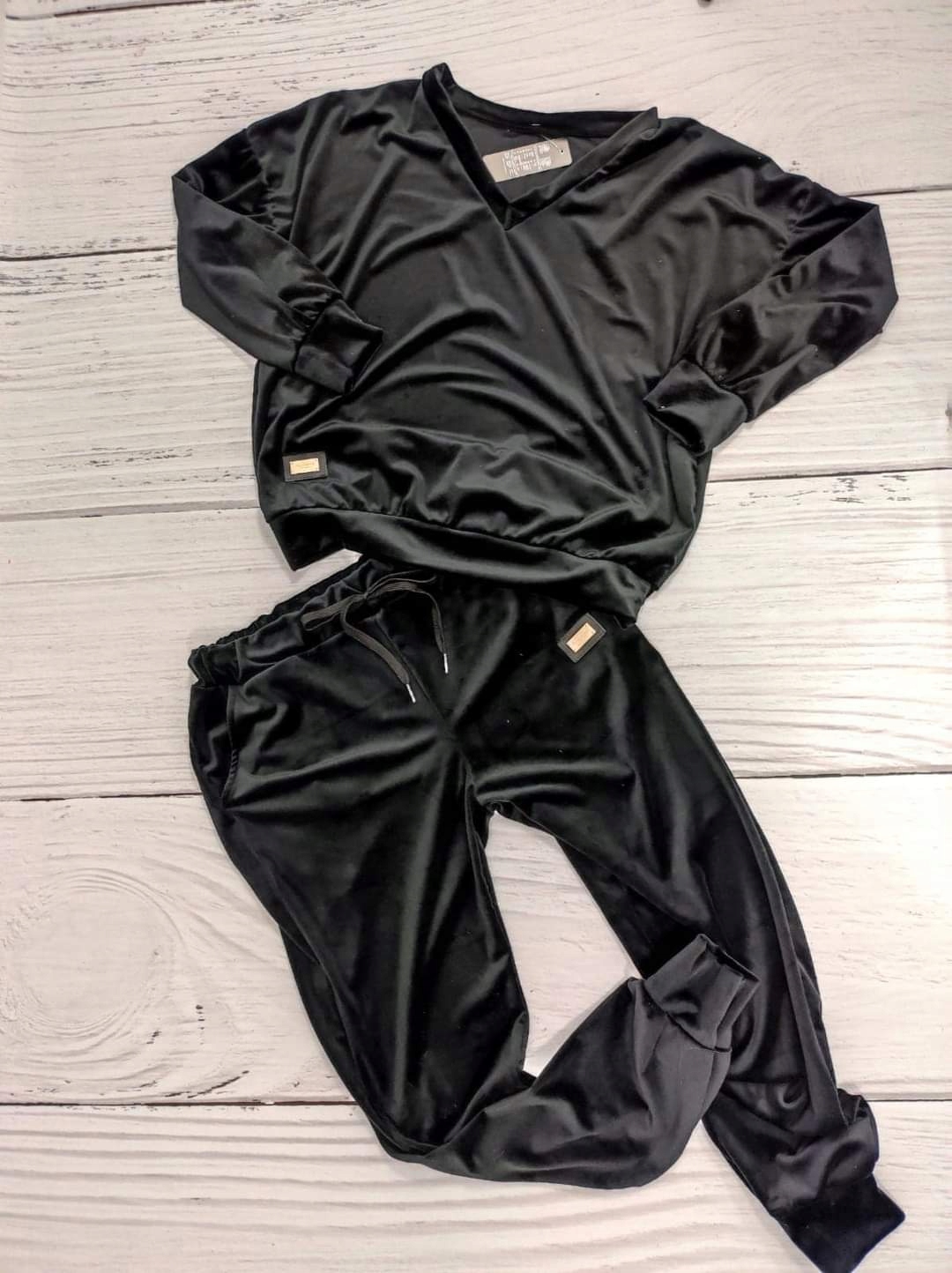 СПОРТИВНЫЙ КОСТЮМ ИЗ МЯГКОГО БАРХАТА, V-образный вырез