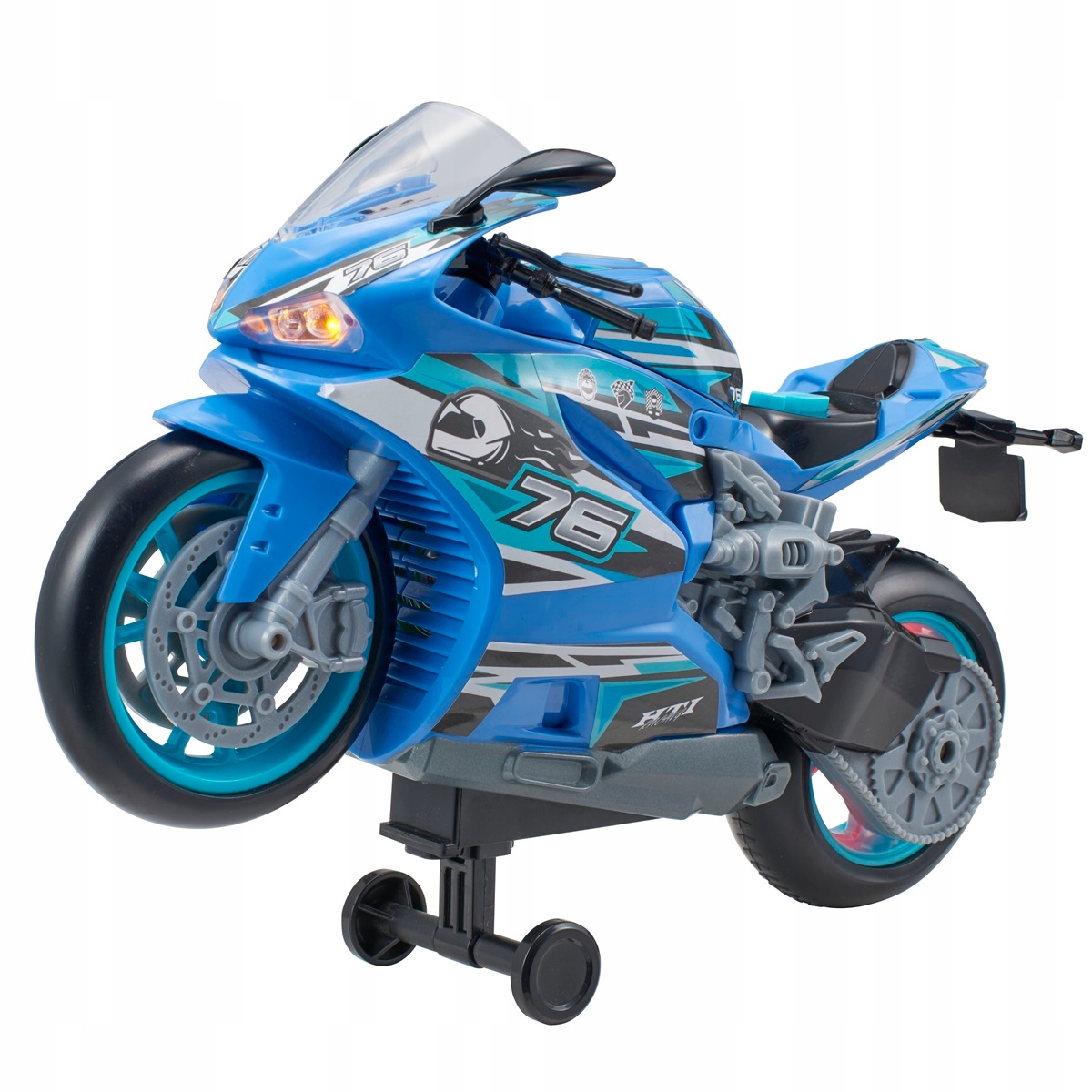 Стильный мотоцикл создан с вниманием к мельчайшим деталям. Автомобиль сочетает в себе современный внешний вид, который наверняка понравится маленьким автолюбителям, и богатый функционал! Мотоцикл оснащен реалистичными звуками и светом, а также функцией вилли. Все, что вам нужно для отличного приключения! Товар предназначен для детей от 3 лет.