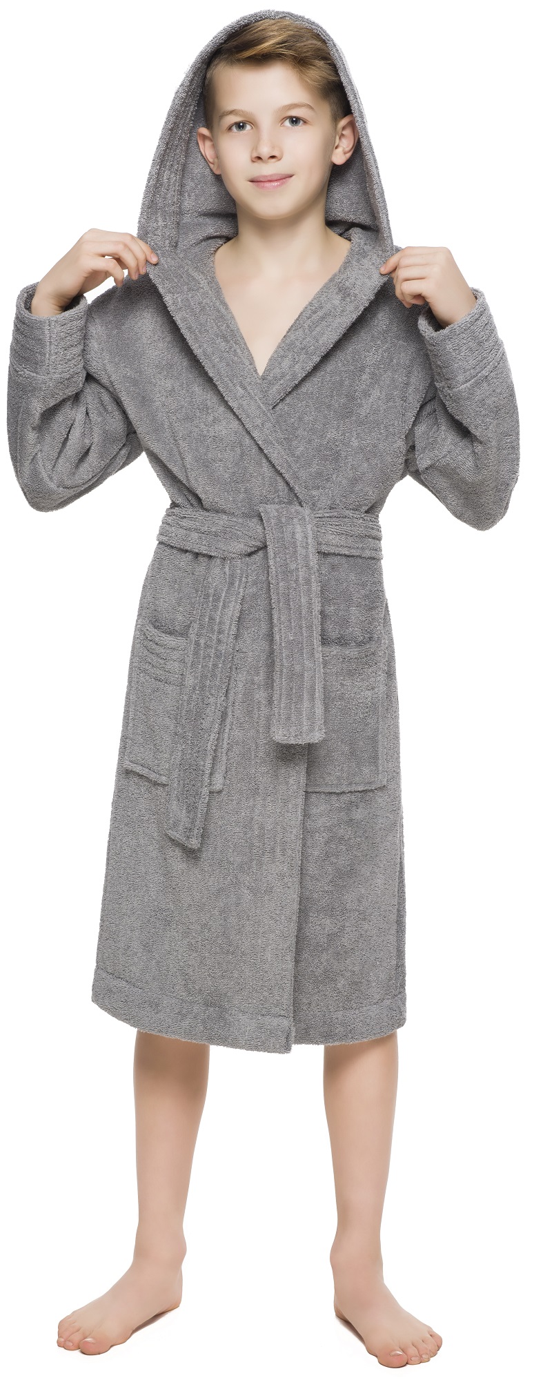 Хороший и удобный халат для мальчиков - подростки из хлопкового Терри, с капюшоном, с капюшоном, привязанный к талии , с карманами. Утра.