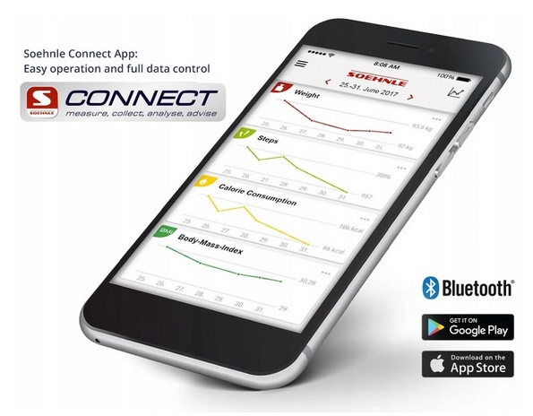 Данные передаются через Bluetooth® в приложение Soehnle Connect. Приложение Soehnle Connect четко отображает все записанные значения за день, неделю, месяц или год и позволяет с первого взгляда увидеть развитие вашей физической формы. Таким образом, вы можете легко мотивировать себя. Ссылка на популярные фитнес-приложения «Google Fit®» и «Apple Health®» позволяет централизованно собирать все необходимые данные о здоровье. В течение дня Fit Connect 100 информирует вас о входящих вызовах и текстовых сообщениях, а также о дате и времени на OLED-дисплее Smart-Touch. Встроенное хранилище данных также обеспечивает большое удобство, поскольку позволяет синхронизировать все данные за последние 14 дней/ночей. Фитнес-трекер защищен от брызг (IPx4), выдерживает даже самые интенсивные тренировки и подходит для запястий с окружностью от 13,2 до 21,3 см с удобным универсальным браслетом, включающим застежку для часов. Очень длительное время автономной работы до 14 дней.