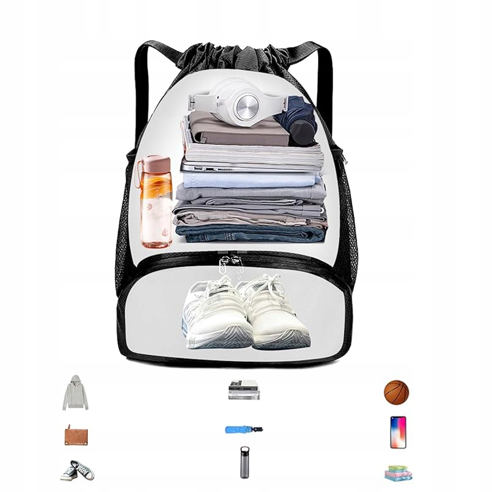 🎧 рюкзак в строке составляет 25 литров, что позволяет вам размещать большинство спортивного оборудования и повседневных статей. Наш рюкзак с перегородкой для обуви, просторной главной камерой и разными карманами - это большая гимнастическая сумка с струной, которая предлагает много места для необходимой гимнастики, обуви, полотенца и других предметов, обеспечения их порядка и легкого доступа. Спортивная сумка, изготовленная из высококачественной Oxford 1080D ткани, была разработана для того, чтобы выдержать ежедневное использование. Эта сумка PE с перегородкой для обуви и водонепроницаемым карманом, закрепленным на молнии, может вместить ценные предметы, такие как мобильные телефоны, спортивные часы или кошельки.