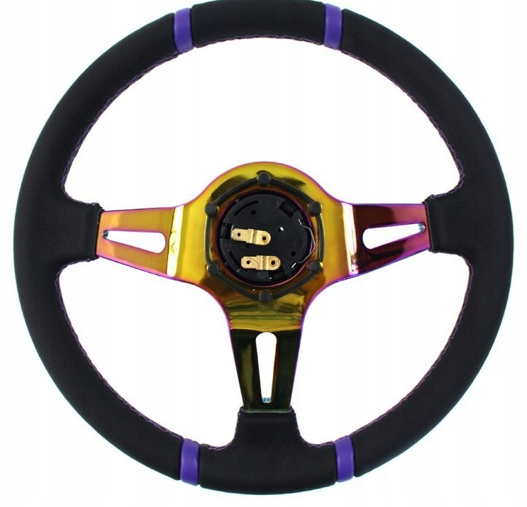 Руль изготовлен из высококачественных материалов. В комплект входит звуковой сигнал, винты крепления, провода для подключения звукового сигнала и наклейка на звуковой сигнал с логотипом производителя. Стандартное расстояние между винтами, т. е. 6 отверстий каждые 35 мм, как у MOMO/Sparco.