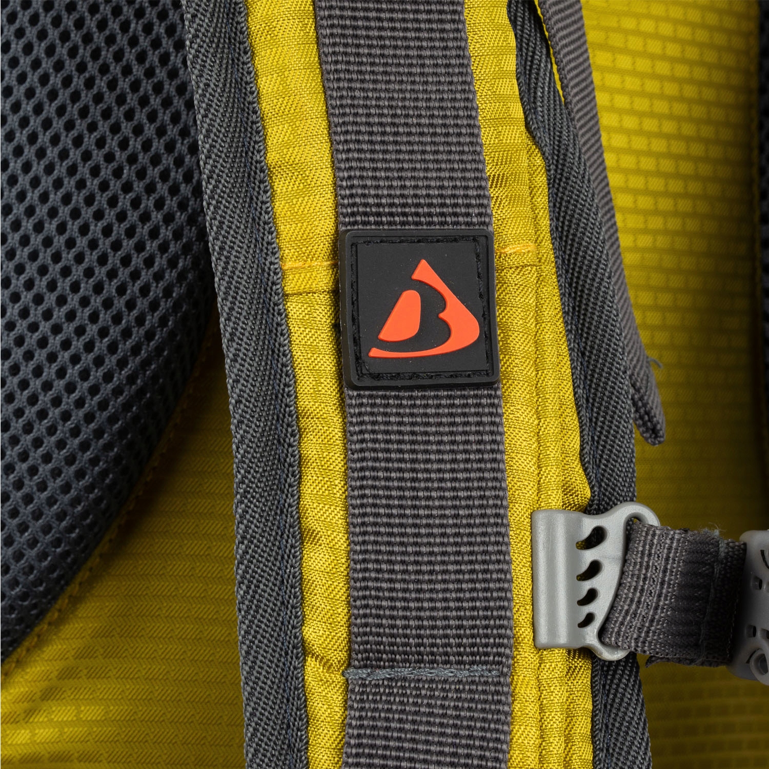 Нагрудный ремень имеет эластичную часть, обеспечивающую свободное дыхание, и систему вертикальной регулировки. В пряжку встроен аварийный свисток: