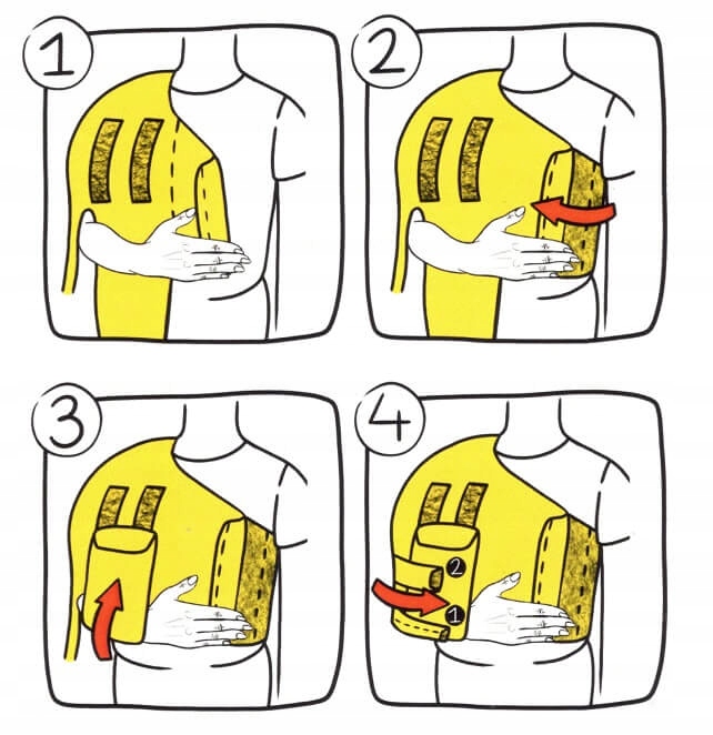 2. Закрепите ту часть жилета, которая проходит под противоположную подмышку на уровне груди.