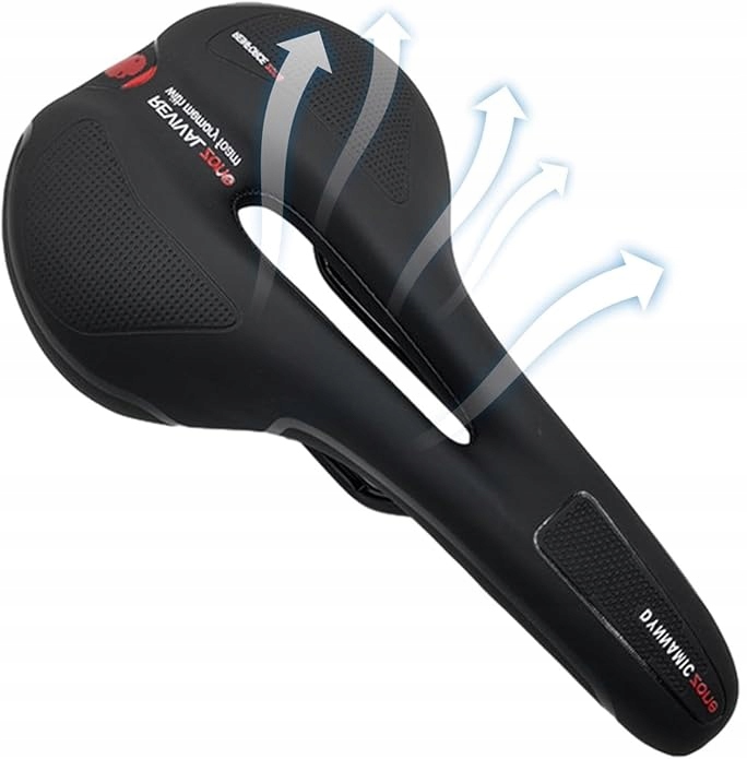 - Эргономическая форма. Вентиляционное отверстие в центральной части седла улучшает циркуляцию воздуха и снижает давление