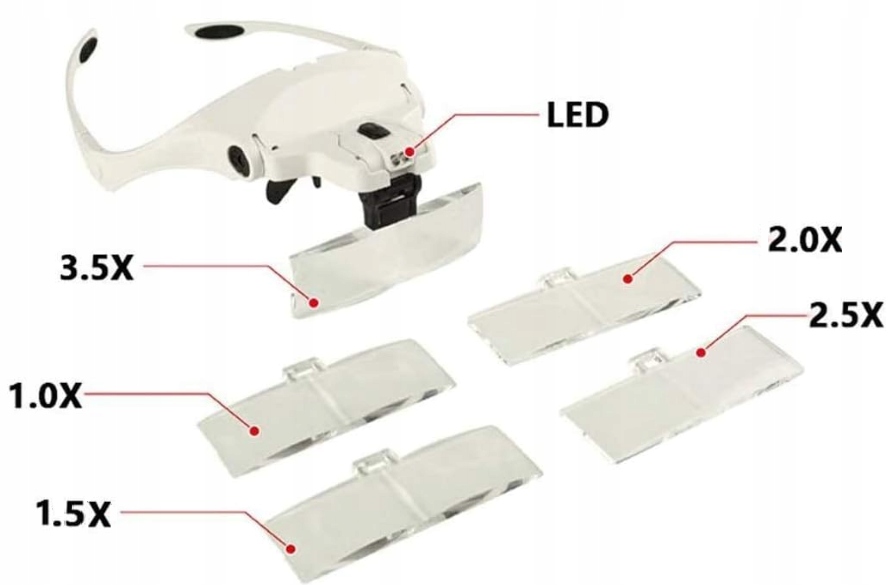- 5 сменных линз (1,0x, 1,8x, 2,0x, 2,5x, 3,5x).