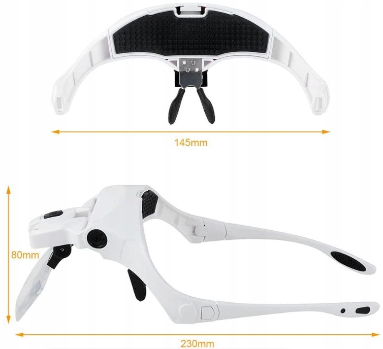 - Удобный дизайн - на выбор из кадров очков или повязки. - Пружинный механизм обеспечивает стабильность.