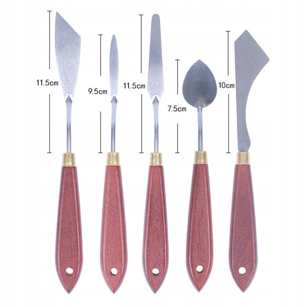 ✅ten Набор состоит из 5 кусочков спатулов, которые будут удобны для смешивания пигментов в различных сценариях. Изготовленные из из нержавеющей стали и древесины высочайшего качества, они долговечны и подают в течение длительного времени, и этот материал не ржавеет и не эрозия. Этот набор инструментов необходим для художников