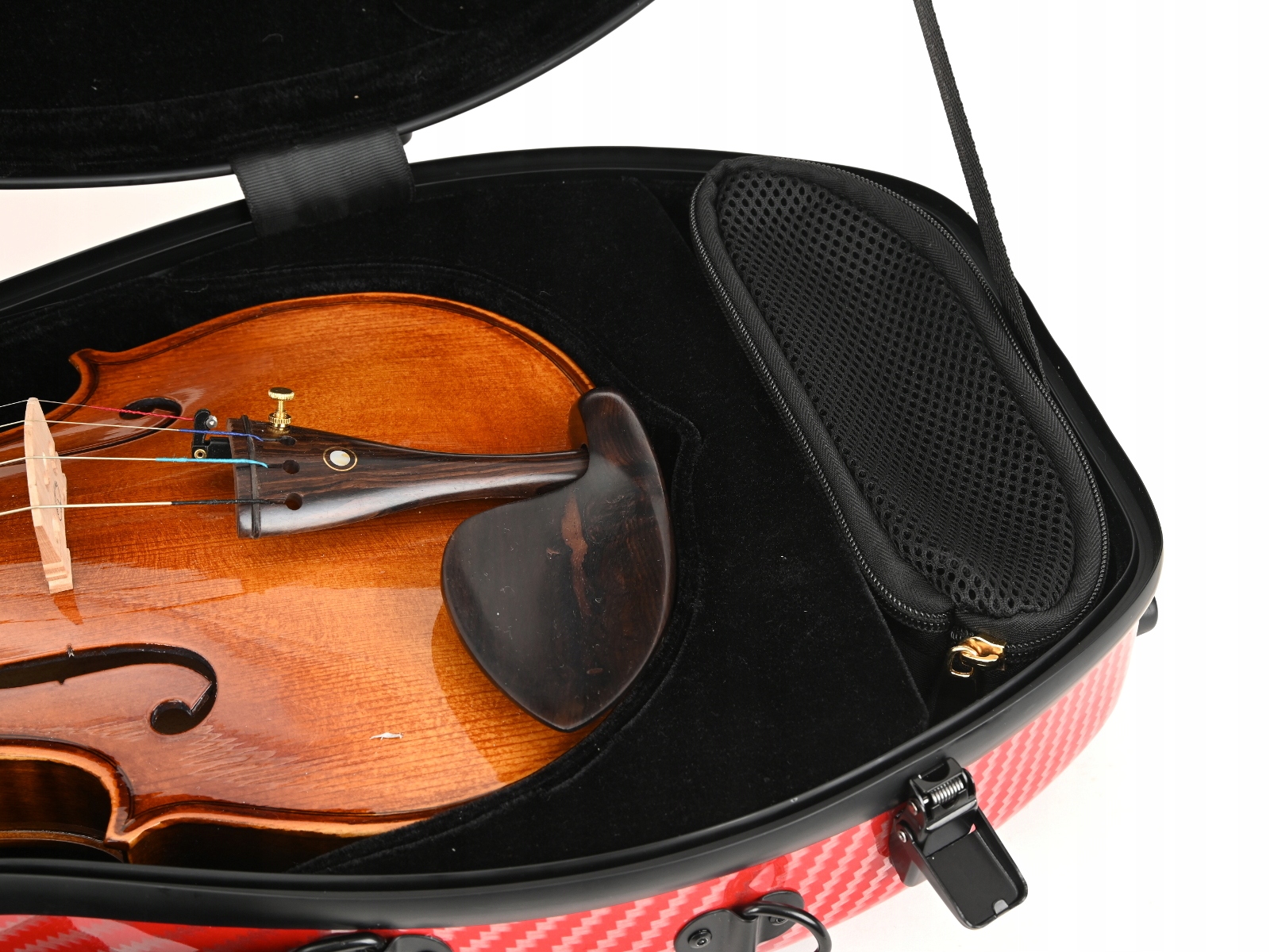 bardzo efektowny, lekki futerał na skrzypce z kompozytu poliwęglanu i abs. Это один из более дешевых случаев, сделанных из пластика, изготовленного в экономической версии. Набор включает в себя скобки на задней панели и сумку для заметок, прикрепленных к корпусу с защелками. Различные цвета с текстурой ткани плетения или имитацией волос. Поверхность случая скрипки, покрытой слоем поликарбоната, делает его менее чувствительной к механическим повреждениям, чем ламинаты из стекловолокна. Однако для поддержания красивой блестящей поверхности требуется забота о использованном корпусе