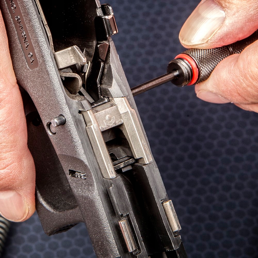 3 мм нокаута подходит для всех контактов, используемых в пистолетах Glock, и позволяет быстро распределять оружие для очистки или ремонта. Магнитный ключ позволяет устанавливать и демонтировать большинство механических прицелов для пистолетов Glock, как стандартных, так и других производителей.