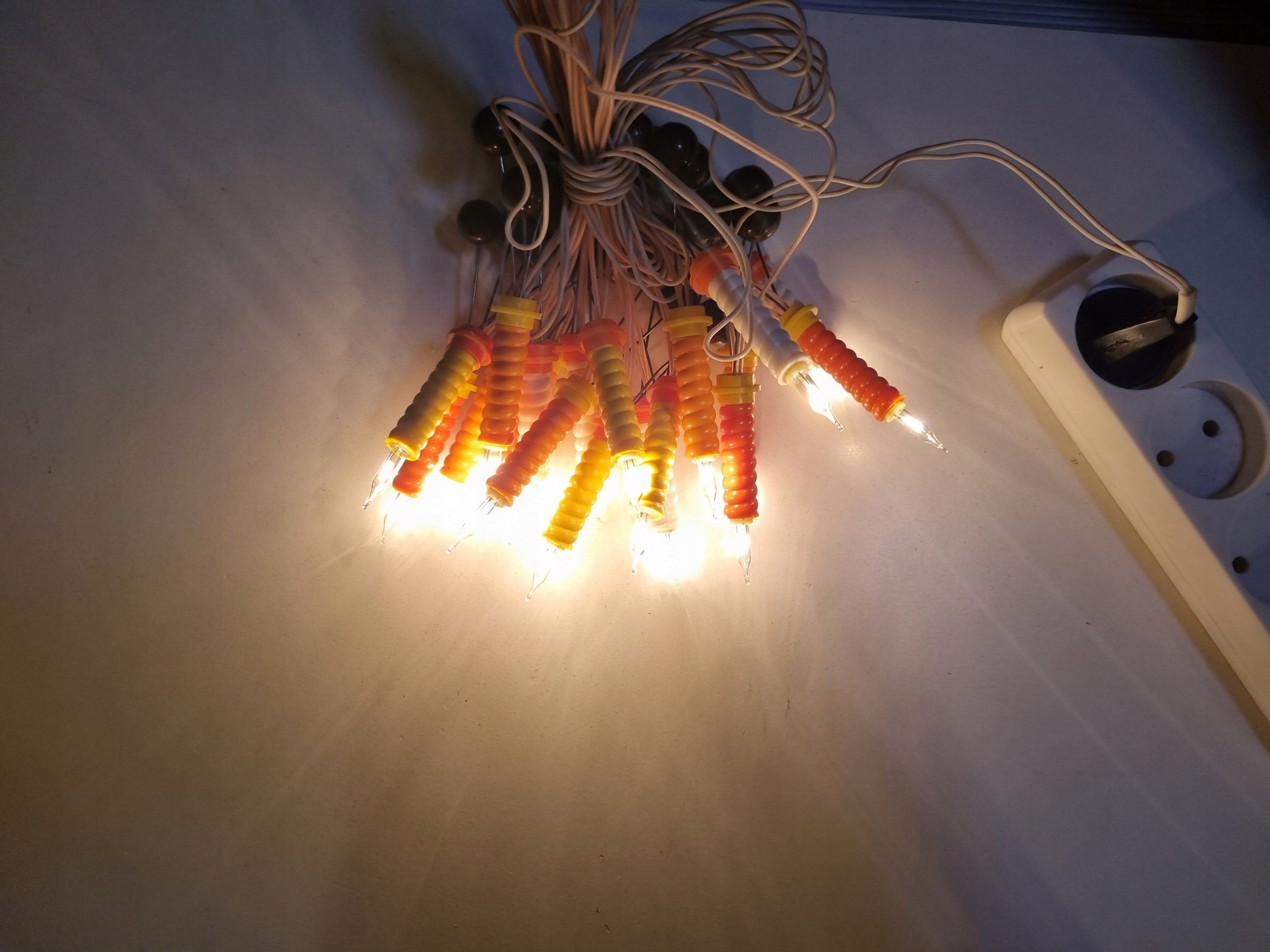 ДЕЙСТВУЮЩИЕ старинные елочные гирлянды из Польской Народной Республики/СССР с коричневыми лампами