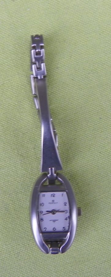 Интересные, интересные наручные часы, водонепроницаемые женские часы от Perfect. На выставке представлен интересный браслет. Та часть, которая соединена с часами, образует одно целое, а звенья дополнительно соединяются друг с другом. У экспоната интересный, необычный, слегка закругленный конверт. Часы имеют прямоугольный циферблат. На циферблате имеются арабские цифры. Часы подписаны на циферблате и на замке механизма. Экспозиция функциональна и доступна для прогулок. Всем рекомендую.