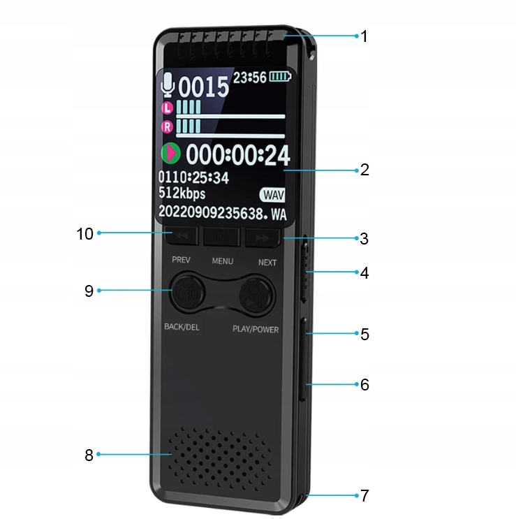 Specification of the voice recorder h2> - Recording quality: wav: 3072kbps, 1536kbps, 1024kbps, 768kbps, 512kbps, 256kbps, mp3: 128kbps, 64kbps, 32kbps