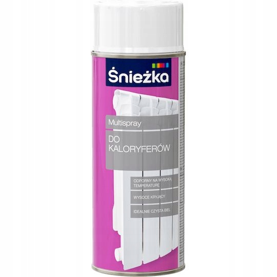 Śnieżka Multispray ДЛЯ РАДИАТОРОВ – высококачественный лак, создающий гладкие и твердые покрытия с повышенной устойчивостью к механическим повреждениям. Особая формула продукта защищает окрашенные предметы от пожелтения.
