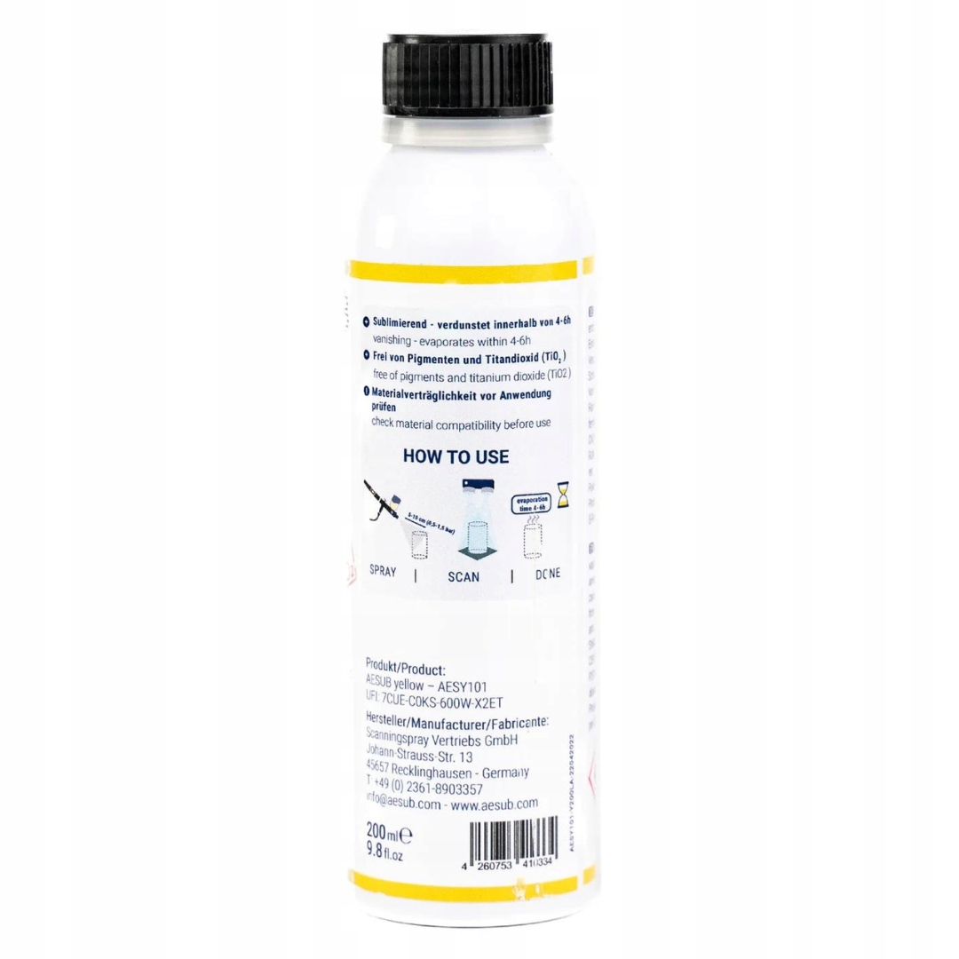 Aesub Spray — это самоиспаряющаяся жидкость, разработанная экспертами. С AESUB Yellow вы достигнете значительногоповышения эффективности и производительности на протяжении всего процесса оцифровки. Защищает оборудование от загрязнения отложениями пигмента. Он предназначен для небольших и точных измерений объемов.