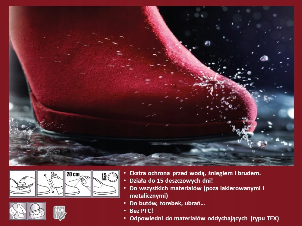 Идеально подходит для всех типов кожи - замши, нубука, гладкой натуральной кожи, натуральной кожи, искусственной кожи, экокожи. , искусственная кожа и все текстильные материалы (хлопок, шерсть, флис, холст...) - также с элементами ХАЙ-ТЕХ - GORE TEX, ALL-TEX.