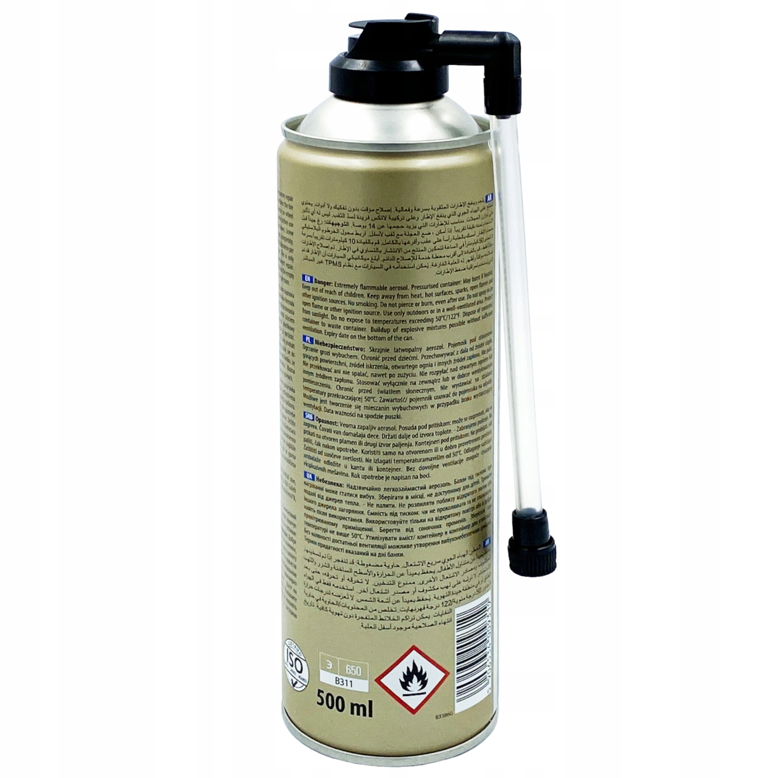 Этот усовершенствованный аэрозольный баллончик позволяет временно отремонтировать шину, не разбирая ее. Это чрезвычайно полезное решение в непредвиденных ситуациях, позволяющее избежать затрат и хлопот по замене поврежденного колеса на запасное.